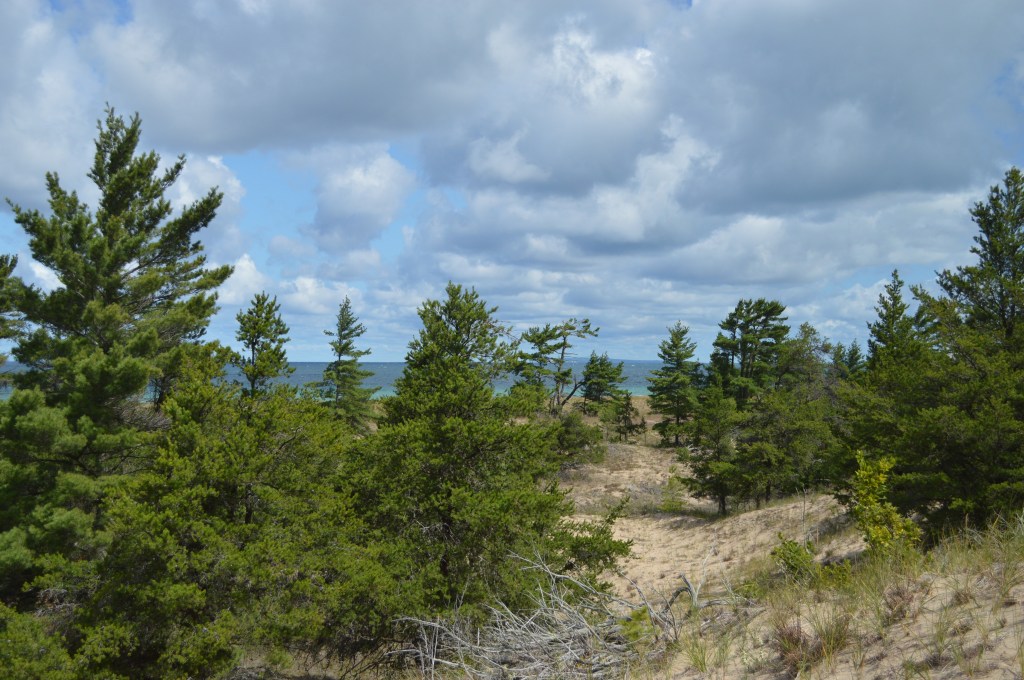 The next day was lion free. The weather was perfect. And we hiked around the back trails near Lake Michigan.