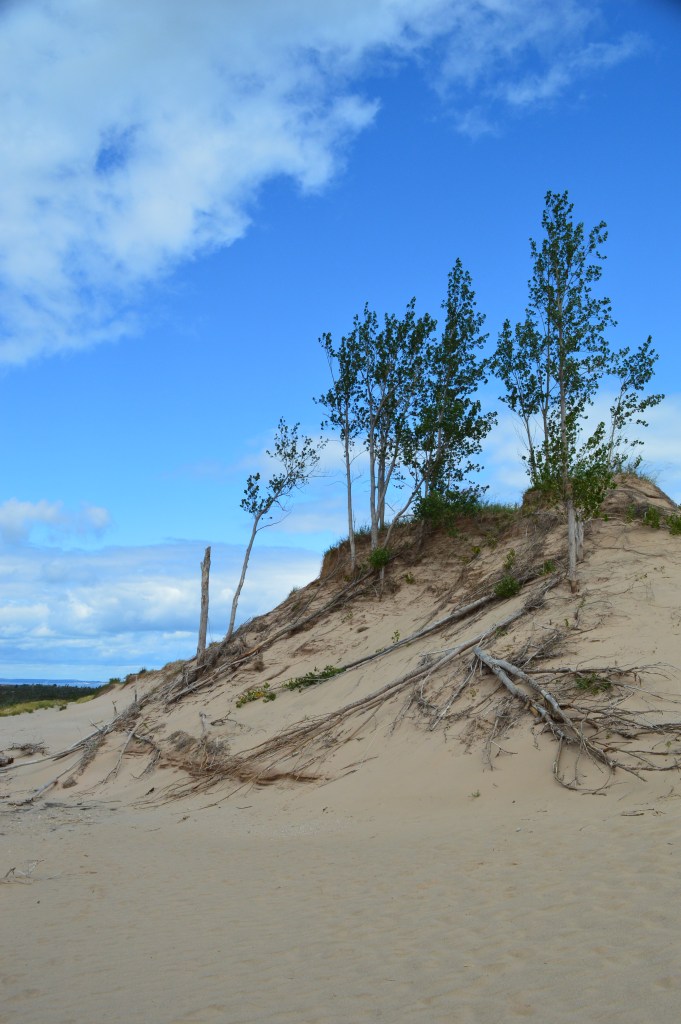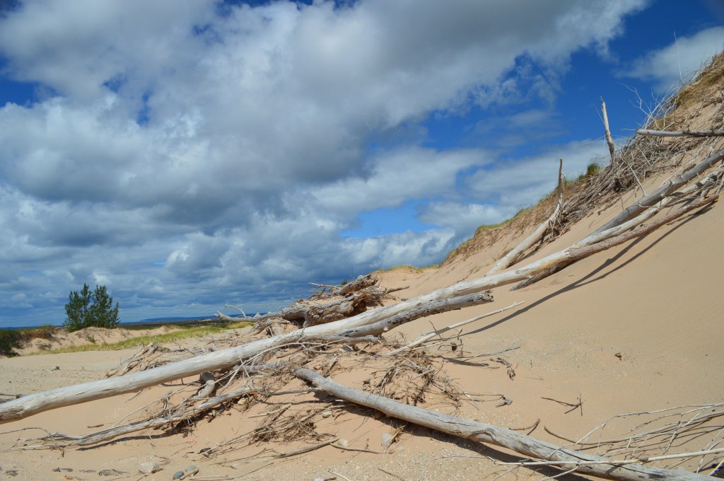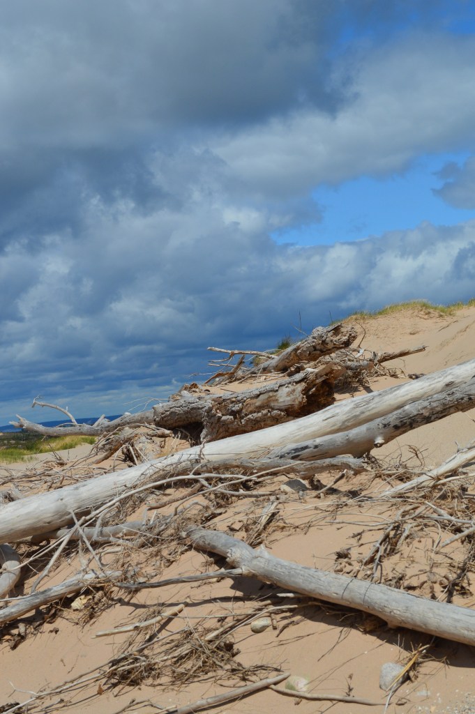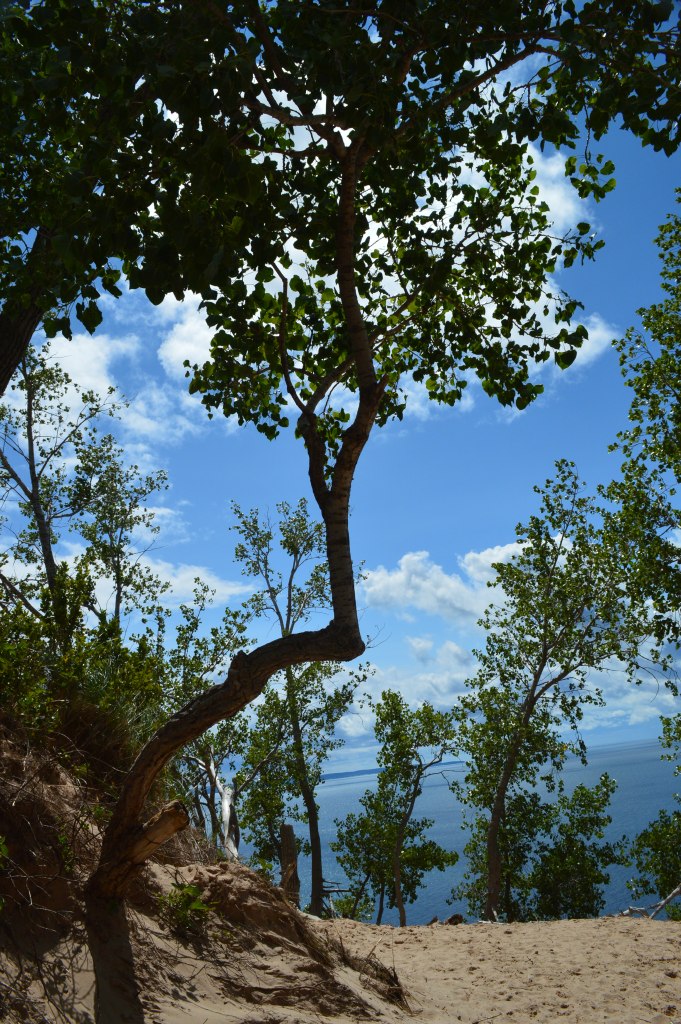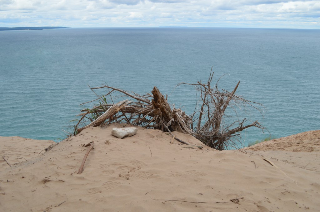 This history of this place is interesting. Michigan has a bit of its own fairytale and folk lore. If you visit, you can get a sense of why. The weather is so harsh and extreme for much of the year, that tranquil days seem to be days of waiting for the storm. The story that gives Sleeping Bear dunes its name can be found here. It originates with the indigenous people that inhabited this area. Read at your own risk though. It is pretty sad.