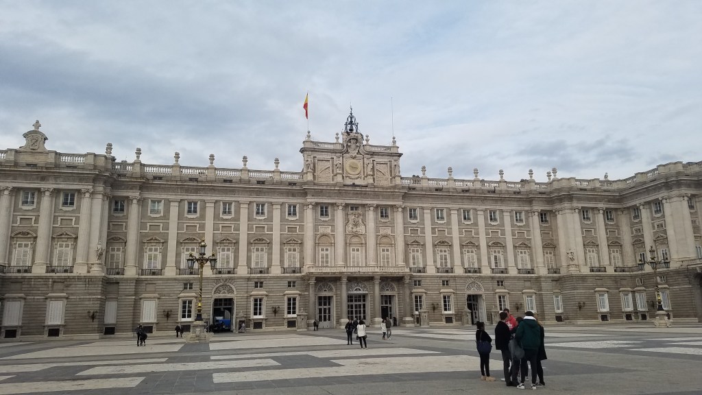 Our next stop was across the plaza. So we bothered the birds a little as we made our way to the palace. Many rooms were preserved with the period furniture, art, and sculpture. Other rooms were made into a museum hosting reliquaries, intricate tapestries, and religious art. My favorite was the armory. It featured weapons and armor preserved from many generations of kings. The horses had their own, very elaborate, armor, which was displayed on statues throughout the room. Photos weren’t allowed inside, but we did manage to snap a few when it was acceptable.