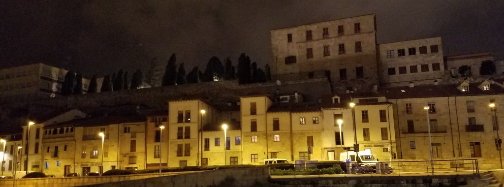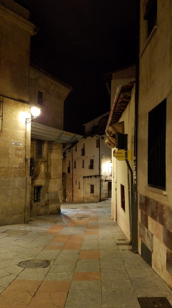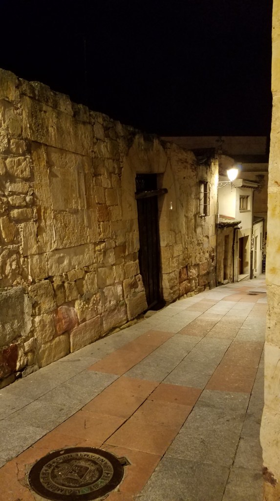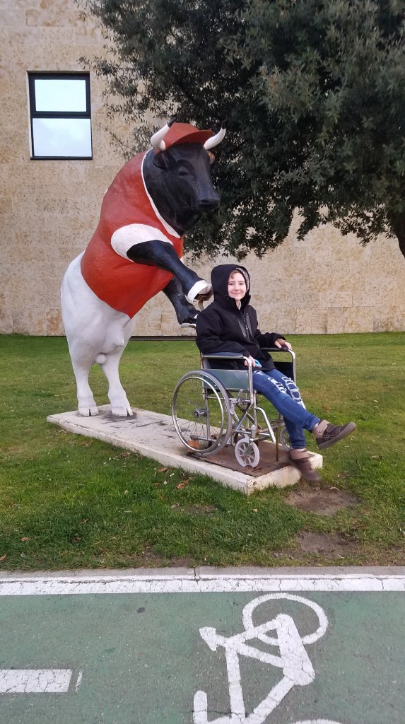 After the endless rain in Santiago, we were happy to see blue skies. Unfortunately, strong winds bore down on the city for our entire stay. That also meant, we were able to enjoy the stunning views without too many other tourists. We arrived in Salamanca in the late afternoon, so there was not much time for site seeing. This bull with a wheelchair was the only notable part of the adventure occurring before dark.