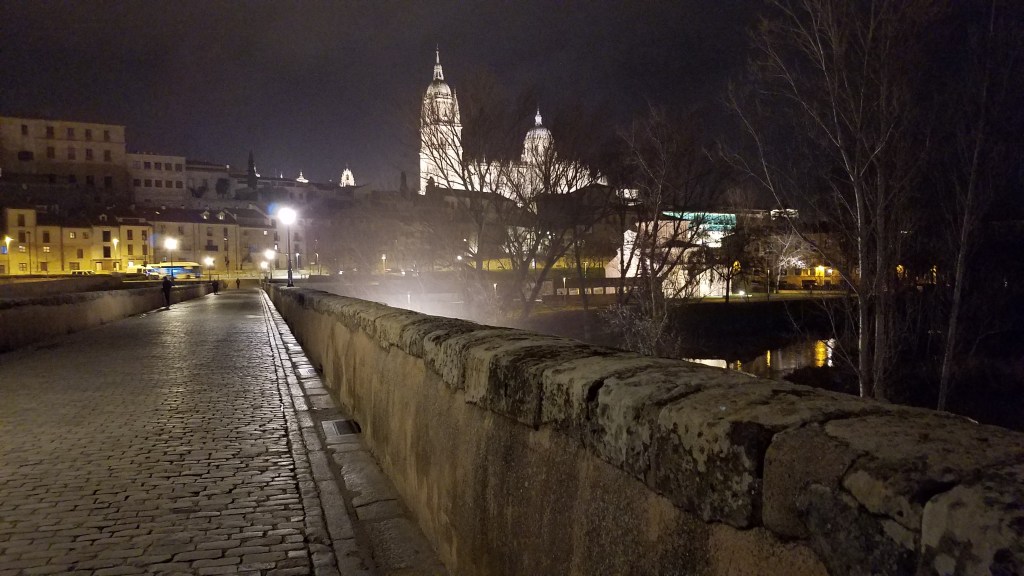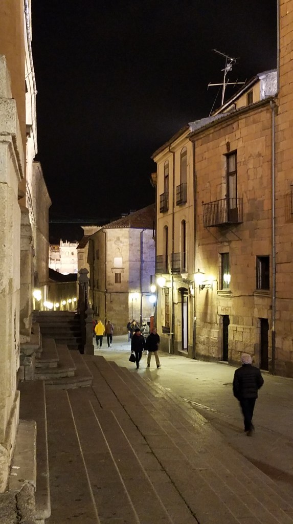 The sky was dark and the the entire city had been illuminated by streetlights and ground lamps placed to create dramatic angles and contrast. Coupled with the early modern stone architecture, the yellow lighting was reminiscent of a movie set. If only I could remember my lines!