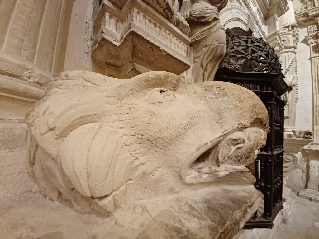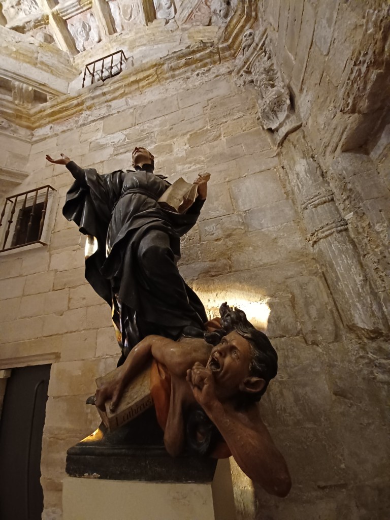 After parking, I climbed some stairs to the historic old town. The views are stunning here. The first stop was the Catedral de Cuenca. The architecture is Gothic, but was built during a time when Romanesque was still popular. As per usual, the art inside was a mix of strange pagan and christian symbolism.