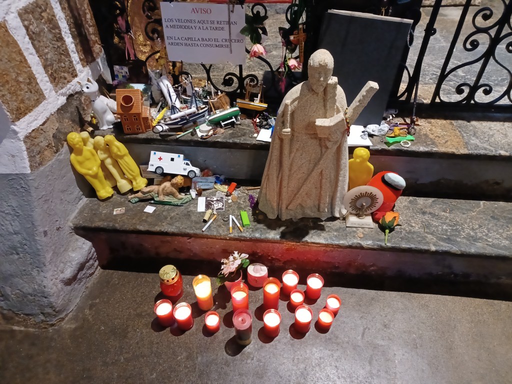 There is a big parking, and you can walk into the town or go to the restaurant. If you walk into the downtown, there are two women selling traditional galician cookies. The second woman tells you everyone stops at the first only. The first woman says her cookies are best. I recommend buying a few from both women for good luck.