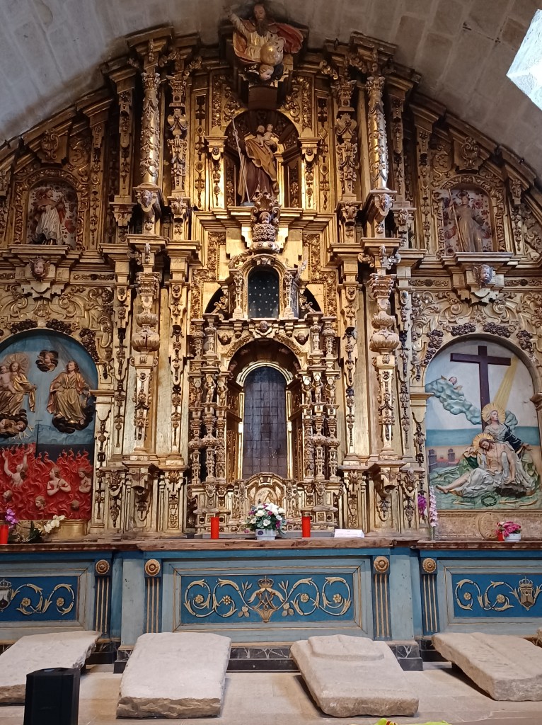 The history of the city begins between 4000 and 2000 BC and the Romans began living in the area around 200 BC. The city makes a lovely backdrop to the festival. I stepped into la Iglesia de Santa María a Nova, which began construction in 1327. The alter, shown below, was constructed in 1760. Some of the more original stonework was also on disply.