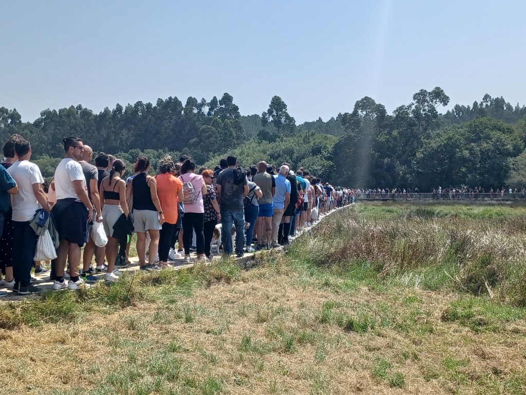 A cautionary tale… This may be a skipped trip for anyone with major mobility or sensory issues. It’s a doable trip for most if you don’t mind a crowd, but the lines to enter and exit are formed on a stone pathway through a wet marshy area. With so many people coming and going, it is restricted to almost single file in either direction and thus relatively long.