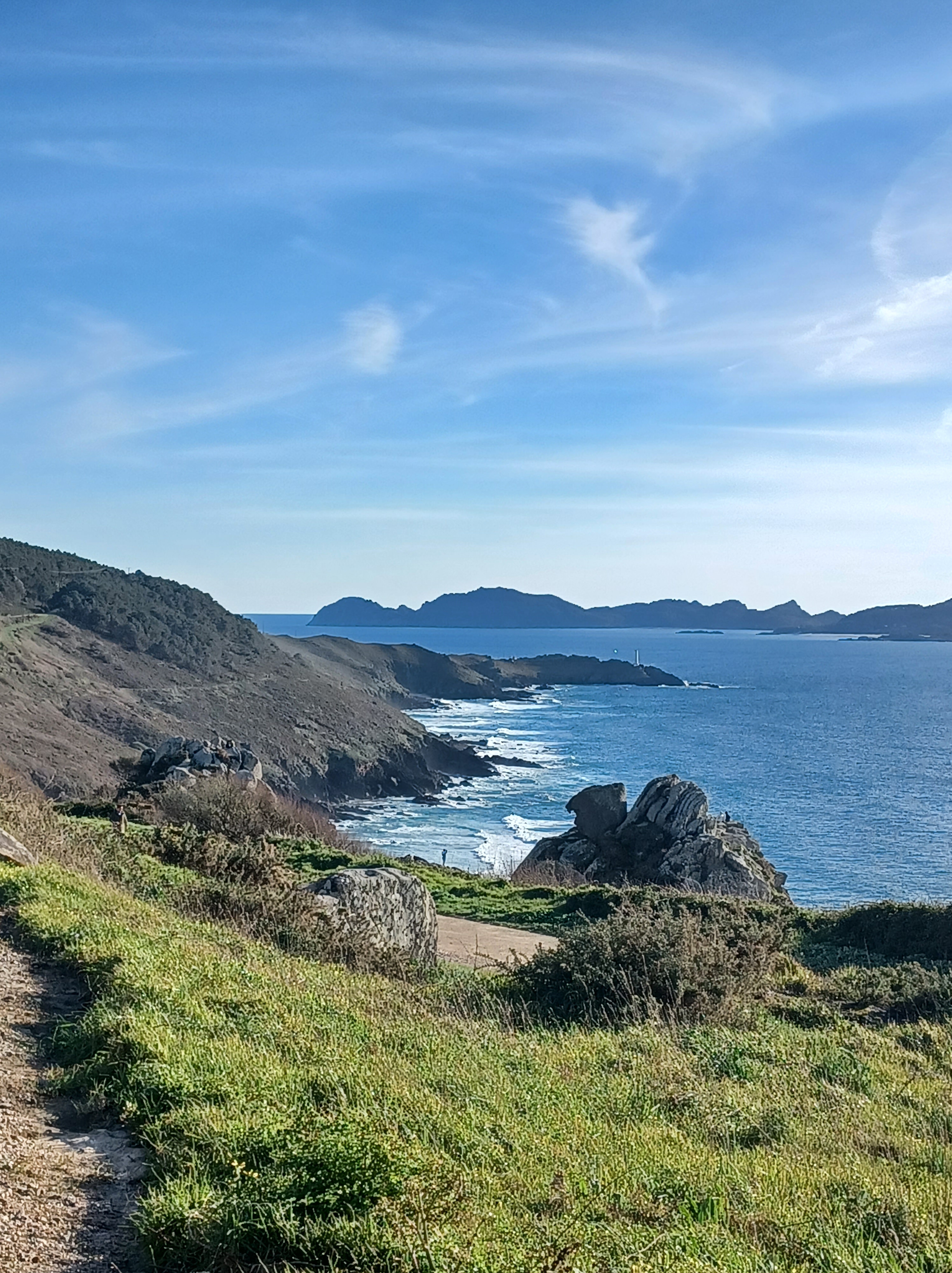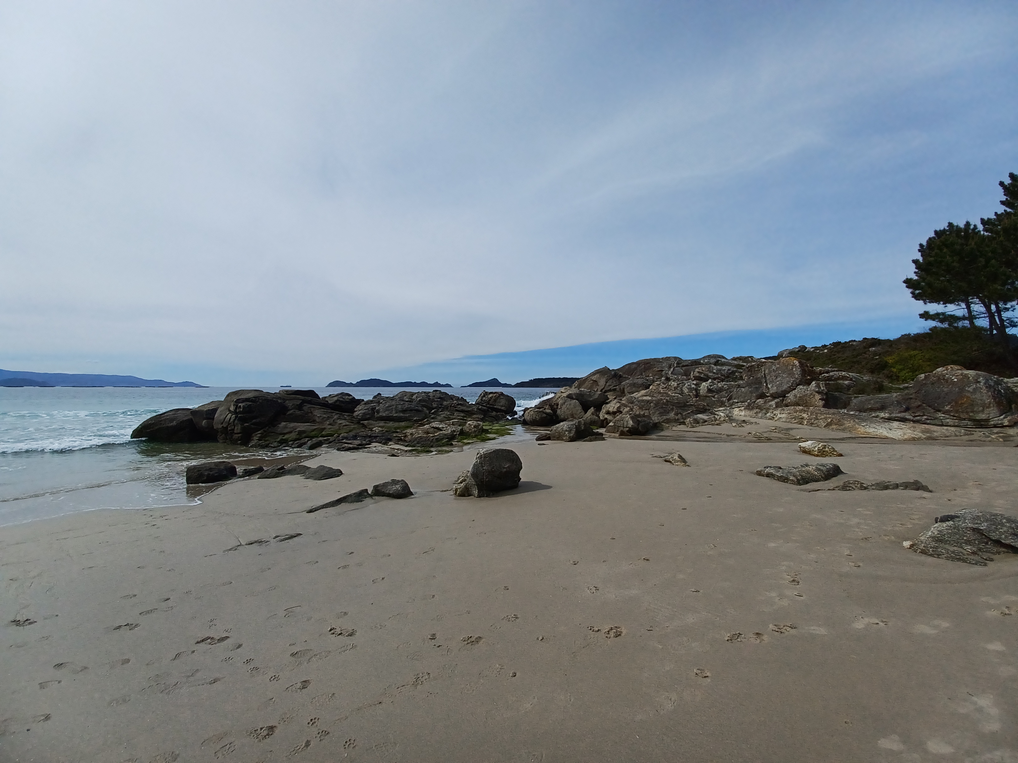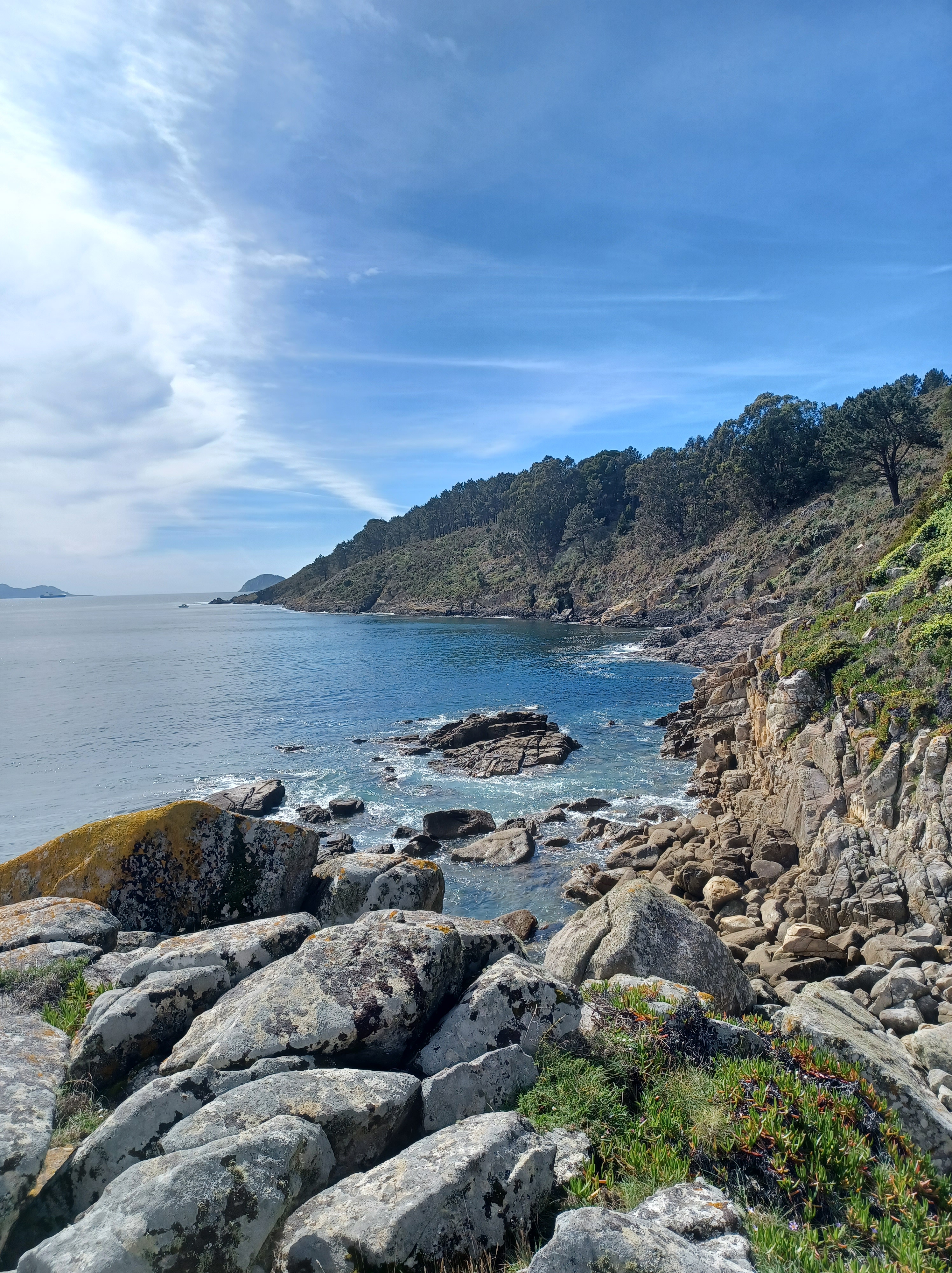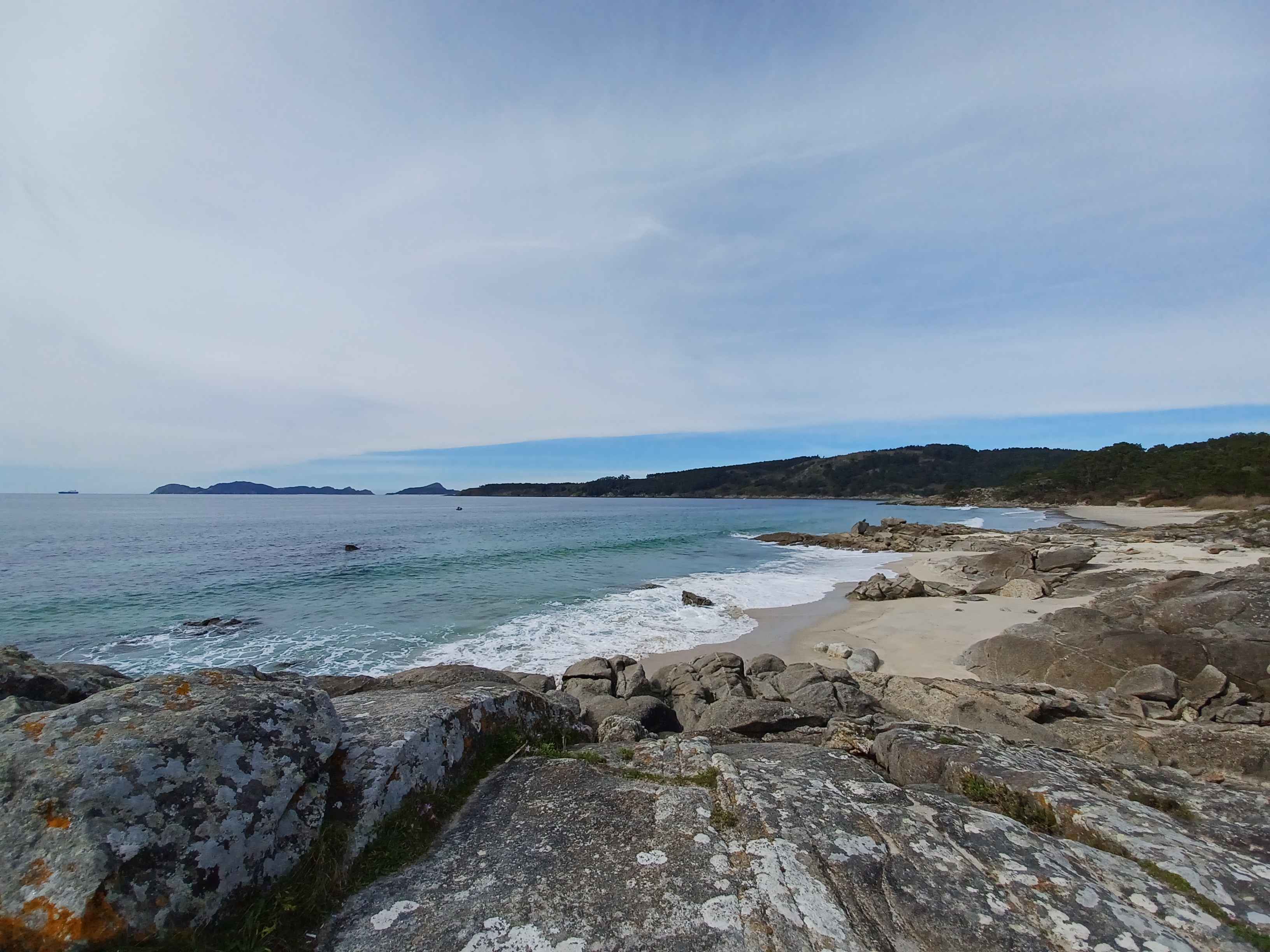 We were able to shed the long sleeves and hoodies. We had anticipated a gray day, maybe a little rain as to be expected in Galicia in early spring, but the sun burned off the cloud cover around midday. We ended up getting a bit warm as there is a lot less wind here than the northern Costa de Morta.